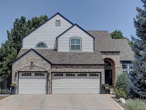 THIS HOME IS GORGEOUS! This is your opportunity to own a CORNER LOT in Vintage, a quaint 33 home private gated neighborhood in PRIME LOCATION! Enjoy features such as NEUTRAL INTERIOR PAINT, PLANTATION SHUTTERS, UPGRADED COUNTERTOPS IN KITCHEN & BATHROOMS ALL WITH NEWER FAUCETS, HIGH END LIGHT FIXTURES, CUSTOM FIREPLACE, BEAUTIFUL HARDWOOD FLOORS on the Main Level & staircase. The ELEGANT CURVED STAIRCASE w/NEW BANISTER & RAILINGS creates an impressive first impression immediately upon entry! This lovely property boasts more features including a LARGE PRIMARY SUITE w/5-Piece Bathroom and DUAL CLOSETS each with CUSTOM BUILT INS for easy organization. 5 BEDROOMS, 4 FULL BATHROOMS, OFFICE ON MAIN LEVEL w/custom cabinets, IMPRESSIVE FOYER, SPACIOUS KITCHEN which opens to the Family Room, a Formal Living & Dining Room. The FANTASTIC FINISHED BASEMENT includes the 5th bedroom & 4th bathroom as well as RECREATION AREA w/CUSTOM MEDIA CABINETS + BONUS ROOM that could be BEDROOM #6, Additional FLEX SPACE w/CUSTOM BOOKCASE (currently used as home office) + Spacious area currently used as a HOME GYM. BASEMENT IS EXTREMELY VERSATILE; use as additional bedrooms, studio, office, etc.! You'll love the FINISHED 3-CAR GARAGE WITH EPOXY FLOORS & BUILT IN CABINETS & PROFESSIONAL LANDSCAPING. Enjoy the outdoors by relaxing on the COVERED PATIO W/CUSTOM SHADES or entertaining on the sun-soaked deck! Easy access to I-25 and the DTC. Close to Silo Park, shopping and restaurants. SCHEDULE YOUR SHOWING ASAP and check out the 3D Virtual Tour online now!