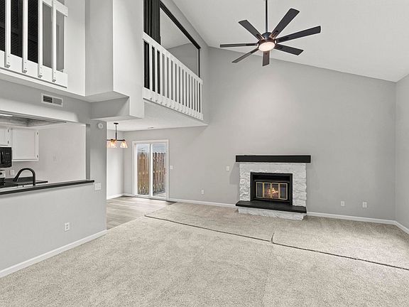 Discover this charming two-story condo in the Sawmill Woods subdivision! As you enter through the covered entrance, you'll be greeted by an open living room featuring new flooring and a stone fireplace. The separate dining area offers easy access to the outdoors, while the kitchen boasts with new appliances and a wall window that overlooks the living space. The main floor also includes a renovated half bath, a pantry and laundry. Upstairs, enjoy two spacious bedrooms(2nd is a landing- will add door with proper offer), and a full bath. The condo also includes a private, fenced-in back patio and an attached one-car garage. Recent updates enhance the home’s appeal, including new flooring, fresh carpeting, new light fixtures, updated bathrooms- new vanity and stools, and new paint throughout. The furnace and air conditioning are also newer. The association has recently installed a new roof and skylights, with plans to replace the screen door and patio area in the next 45 days. Association dues cover roof repairs, exterior maintenance, siding, snow removal, landscaping, and access to community amenities like the pool, clubhouse, and courts for tennis, pickleball, and basketball. Conveniently located just minutes from Shoaff Park, the family YMCA, shopping, and dining options!