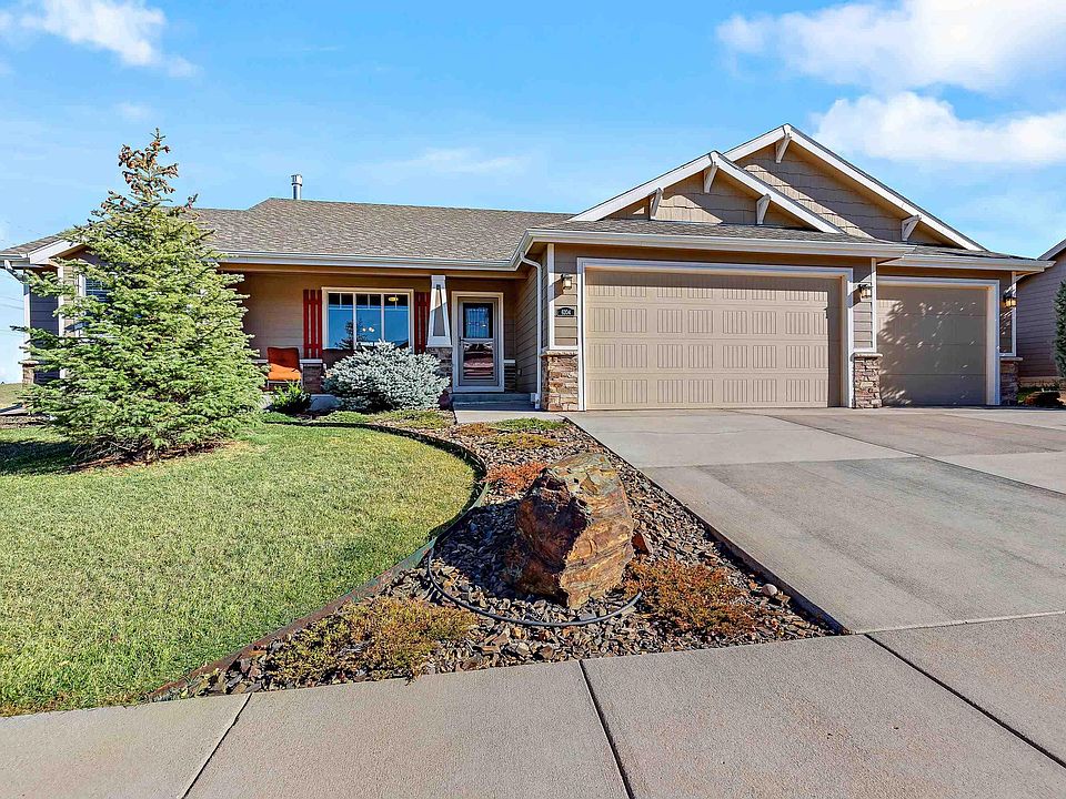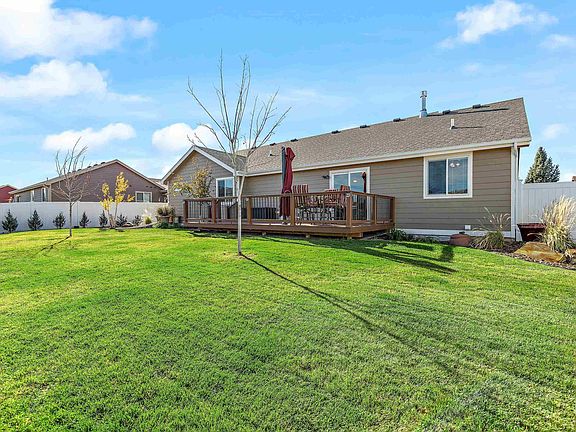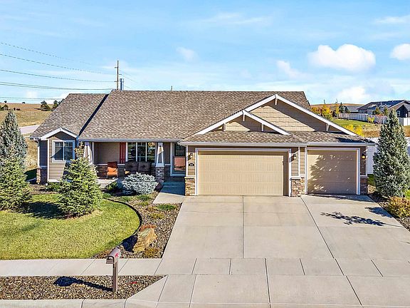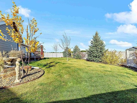 Come & Spend the Holidays in your new home. This Red Rock Meadows Ranch-style home offers an open floor plan with convenient main floor living & a full basement with wet bar. The best part really is the custom landscaping; notice the richness of the colors & textures in the trees & bushes, sprinkler system, privacy vinyl fence, and large trex (maintenance free) deck. Bonus: the patio furniture may convey. New roof, cozy front covered porch, large driveway, and finished 3-car garage, with handicap ramp into the main-floor laundry room. 5 beds, 3 baths. The kitchen has gorgeous cabinets, granite countertops, newer appliances, & plenty of space. The living room has a custom gas fireplace mantel and surround and motorized window coverings. Three bedrooms on the main floor, including a spacious master suite with walk-in closet, bath with double sinks, walk-in shower, & jet tub. Downstairs is a large family room, wet bar, two huge bedrooms , walk in closet, stylish bath, & storage.