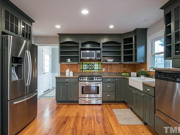 Love Chip and Joanna Gain's style...look no further than here in the heart of Raleigh in desirable Valley Estates. This 3 bedroom plus double bonus charmer is move in ready! Heart of Pine floor throughout entire home. Enormous family room with beautiful brick fireplace and sunroom which is heated and cooled. Updated kitchen cabinets with farm sink. Separate entrance to mud room and large sep. laundry. Fresh paint and lighting throughout! Fenced yard with beautiful deck/patio/storage- A MUST SEE!!!