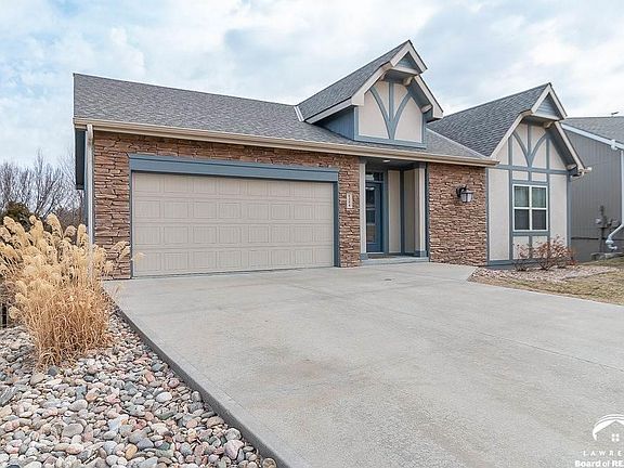 Gorgeous walk-out rancher with so many new updates! Brand new wood flooring, carpet, and interior paint. New deck and slider, and front door. New farmhouse sink and quartz kitchen countertops. 2 bedrooms on main level w/3 additional in the finished walk-out basement. Two options for primary bedroom. Private, fenced backyard- lot line extends past fencing to the east. Common pool and playground. Great location, close to Clinton Lake and the K-10 bypass. Langston, SW, LHS districts.