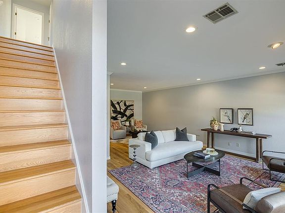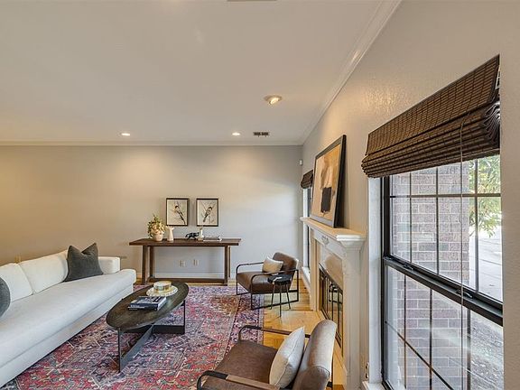 cozy wood-burning fireplace. The master suite includes a remodeled closet curated by The Container Store, adding both luxury and efficiency to your storage. The home features a dual-zoned HVAC system with thermostats on each floor, controllable from your phone for optimal comfort. The HOA covers water, trash, sewage, building