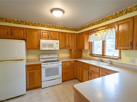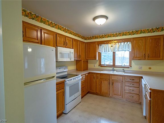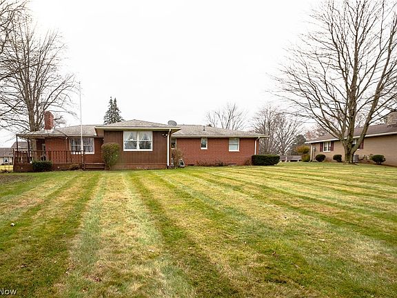 Enjoy this 3 bedroom, 2 full bathroom brick ranch home located on a flat .89 acre lot on a dead end street in East Canton. The main level features an open floor plan having an updated kitchen with oak cabinets and all the appliances, an eating area, a large great room addition that has a sliding glass door leading to a deck overlooking the back yard, a sunken living room with stone gas logs fireplace and a door leading to a covered porch that's perfect for the grill and a large family room with picture window allowing in tons of natural light. Down the hall are 3 nice sized bedrooms featuring an owners suite having a private full bathroom with walk in shower, and 2 more bedrooms with large closets and another updated full bathroom with ceramic tile flooring. The lower level is partially finished with a large rec room and another bonus room with pool table and bar area and plenty of room for storage. Other features include a huge 22 x 22 outbuilding with electric, an oversized 2 car att