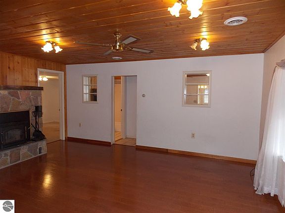 Nicely maintained 2 possibly 3 bedroom home with insulated, attached 1 1/2 car garage, and fenced in back yard. Hardwood flooring, carpet, and ceramic tile throughout with many updates which includes roof, vinyl siding & windows, furnace, hot water heater, washer, dryer, (washer/dryer not currently hooked up), stove, refrigerator, and microwave. Snuggle up to the beautiful fireplace in living room w/nice bay window. If your needing a 3rd bedroom, the den could easily be converted and it already has a good sized closet. Halfmoon and Bear Lake access offering great swimming and fishing. Conveniently located near the expressway, state land, and several all sports lakes. This home would be perfect for year round or recreational use!