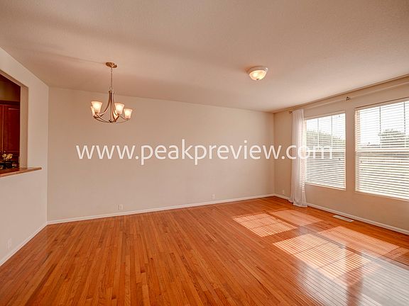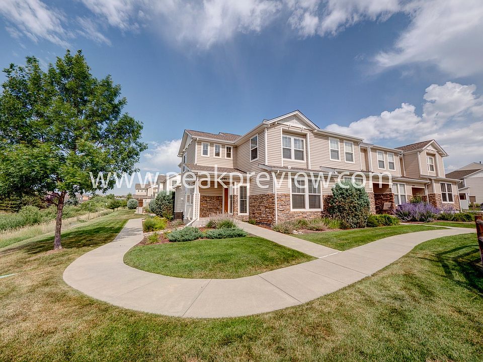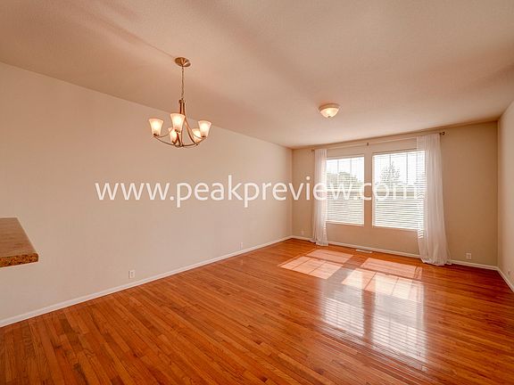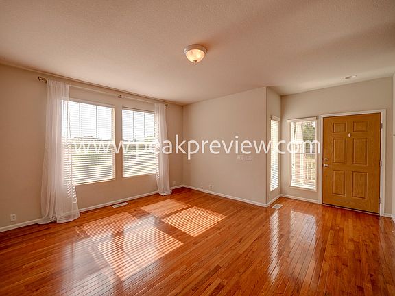 Stylish & beautifully-maintained end unit on a quiet greenbelt. Sunny windows, hardwood throughout, central A/C, gated community. Generous-sized bedrooms, large vaulted master. Open floor plan with 9-foot ceilings on the main. Main-level laundry off the kitchen. Oversized garage. Fantastic location - very private & quiet, tucked away from busy streets and only steps away from the Sand Creek Trail. Gated community with quick access to Marksheffel and Powers. Very easy commute to Peterson AFB. No pets, non-smokers only, excellent credit. This is usually a score of 750+ required of each adult applicant. First month's rent + last month's rent + deposit due at time of lease. Military clause included when applicable. Washer & dryer included.