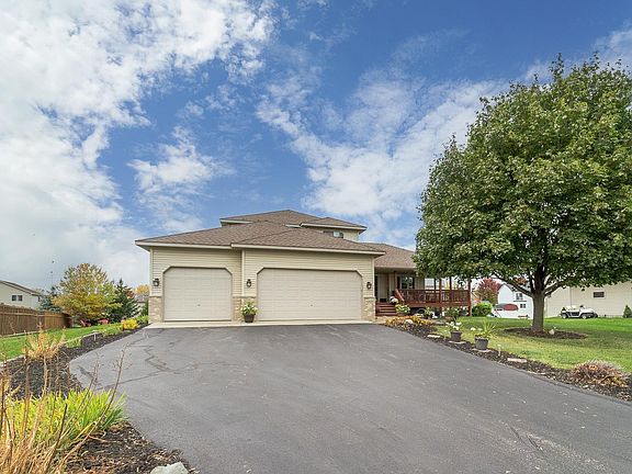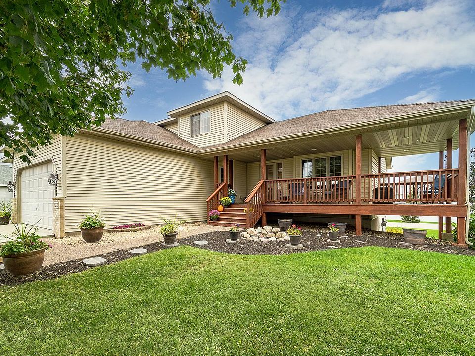 Welcome home! Only relocation makes this custom built 2 story in model like condition available. You will fall in love with this open concept floor plan with vaulted ceilings huge kitchen and all the new updates including a newly finished basement, new carpet and fresh paint throughout, entertainment size maintenance free deck as well as a huge wrap around porch, massive sport court all situated on almost a half acre lot! Truly a must see.
