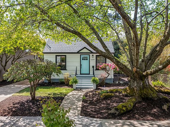 Welcome to the Cherry Tree Cottage in desirable Arbor Lodge with a fully permitted detached Accessory Dwelling Unit (ADU). She has all the character of Portland history with a blend of modern touches. Turn-key living with major updates from shell out including: new roof, exterior paint, interior paint, restored original hardwood floors, custom trim and new millwork throughout. New electrical panel, switches and fixtures. All new plumbing, fixtures, new HVAC, new hot water heater, silent fans in bathrooms. The spacious new kitchen features new cabinets, stainless appliances, custom tile backsplash with quartz countertops. There are multiple built-ins throughout the home providing extra storage. The main level has two bedrooms and bath with custom quartz tiling and glass shower doors. Lower level has walk-in shower with custom tiled bathroom with glass wall and door, LVT flooring, dedicated laundry and storage. ADU studio has walk-in shower, electric cook top with new windows and slider. It's perfect for short term rental, caretaker quarters or a lovely home office. The private backyard has new sod, freshly maintained shrubs and trimmed trees for a wonderfully shaded yard. The featured cherry tree is a staple in the neighborhood and shows her true glory when she blooms each spring. This home is dialed in with almost every update complete and ready for new ownership - don't miss this one! Ask your agent for the rent analysis on this ADU to see how you could offset payments or compare tiny home short term rentals in the area to see potential! Move in and have NO Honey-Do lists with this home.