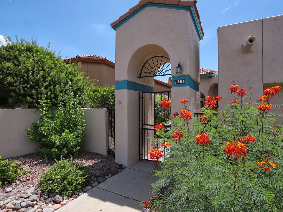 Beautifully updated townhome in gated Kachina Hills. Very convenient central Foothills location is just minutes from a wide selection of fine restaurants, services and shopping. This special home is move-in ready and features gorgeous porcelain tile throughout, a spacious kitchen with all new appliances and a bay window with great mountain views. Wonderful master suite includes a slider to the patio, walk in closet and separate tub and shower. The large covered east facing patio backs to a natural area and includes brick pavers and mountain views. Generous spaces, yet an easy house to lock & go. Sparkling neighborhood pool and spa are just steps away. House was re-plumbed with the PB Pipes replaced in 2014.