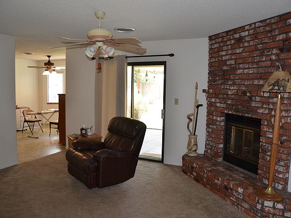 Charming home in great cul-de-sac location! This 3 bedroom. 1.75 bath home features amazing front and back landscaping with mature trees for privacy and lots of room for entertaining your guests. The large covered patio is great for those hot summer days and watering is easy with automatic sprinklers in both the front and back yards. The interior has a double wood door entry, ceiling fans throughout, and a cozy floor to ceiling brick fireplace in the living room. The kitchen features lots of cabinets for storage, tile countertops and backsplash, a breakfast bar, and a dining area with views of the backyard.