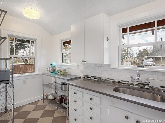 A classic South-Tabor gem, this updated corner-lot home remains true to character w/ original hardwoods, vintage tile flooring + more. Updates incl slab quartz counters, full-height backsplash, new (2012) Marvin vinyl windows, tankless water heater! Nonconforming master suite boasts large closet area, subway tile shower + XL claw foot tub. Large yard w/ privacy hedge, patio, + garden. Sunny Southern exposure!