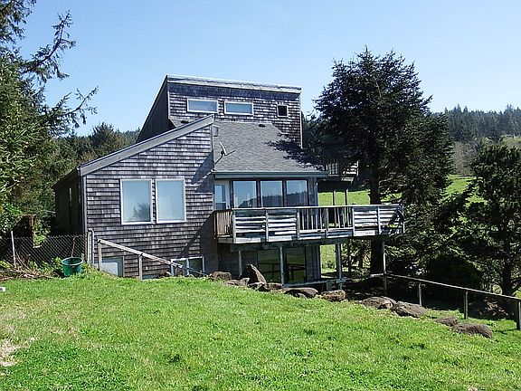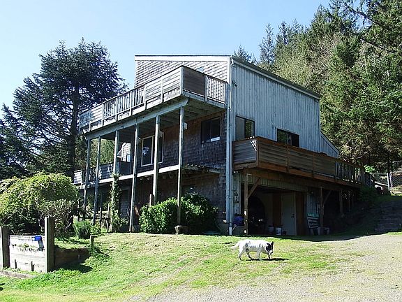 Mesmerizing view watching the ocean waves crashing onto Cascade Head. Watch the wildlife play; whales, eagles, hawks, deer & a gorgeous herd of elk. This peaceful 10 acre property with barn has amazing potential. 3 levels; each with a bedroom, bath & sitting area makes this the perfect vacation home; or reside here and have a nice guest area with kitchen & bath. Wooded area & expansive views. Perfect for horses. Truly a gem.
