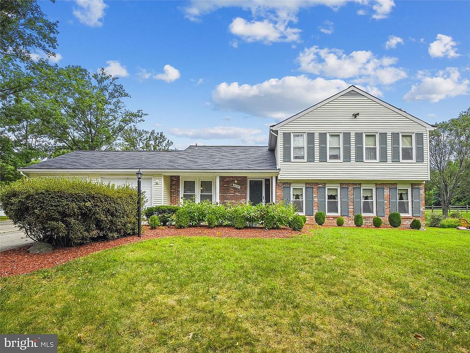 Welcome Home! Imagine yourself in this lovely 2,368 square foot 3-level split level home sitting on a .24-acre lot. Featuring 2 oversized primary bedrooms with full baths, along with 2 additional bedrooms, and 1½ baths. Your new home has a galley kitchen boasting a tiled floor with light and bright, spacious breakfast room that offers large windows. The main level also features a separate dining room, living room and sliding glass door to the rear yard. The upper level has an enormous primary bedroom with enough room for a King size bed, sitting area adorned by beautiful hardwood floors and an ensuite bath with walk-in closets. Lowest level offers a sizable recreation room, featuring a beautiful brick fireplace, laundry room with and additional walk-out to rear yard. This wonderful home has a large patio that provides the essential backdrop to display the mature trees and shrubs it has to offer; backing up to a community center for the ultimate privacy. This beautiful home also boasts an oversized 2-car garage and covered entryway.