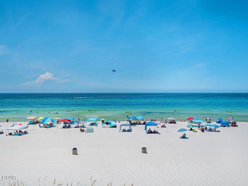Rare, Third Floor Corner Unit Beach Front Condo in Nautical Watch. The sunset view is indescribable. The unit has been recently upgraded to a full 2 bedroom 2 bath. The upgrades include luxury plank flooring throughout, vaulted wood plank ceilings in the living area, all stainless steel appliances including a Fisher Paykel 2 drawer dishwasher, brand new over range microwave, granite countertops, stackable washer/dryer new (December 2022) heat pump, new (Sept 2022) water heater, all new (Jan 2023) windows and sliding glass doors. The unit comes fully furnished with beautiful stylish furnishings as shown in the photos. Even the building roof was replaced in 2021. Already on the rental market, the unit is a great income producer. Five minutes from many of the great restaurants, family-friendly entertainment spots, and St. Andrews State park, combined with a private beach access and those sunsets. This unit offers everything vacation goers are looking for. The pool is even heated in the winter!