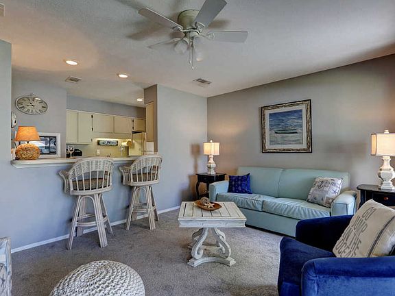 This ground floor 1 bed/1 bath end unit at Nautical Watch is perfect for your beach getaway! Just a short walk to the sandy beach and steps away from the pool, you'll enjoy the laid back lifestyle in this low density/ low rise complex. The kitchen with breakfast bar has seating for 4 and includes all appliances. The living room has seating for 4 and includes a sleeper sofa. Updates include new roof, new carpet and new stackable washing machine. Enjoy beautiful views out to the private patio which has a direct view of the pool. Amenities include bbq grills and picnic area, heated pool, courtyard and dedicated beach access. Make this your beach vacation home or add it to your rental portfolio.