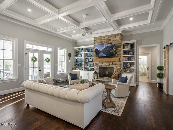Custom-built home that still looks brand new! Open Floor Plan from large Kitchen to generous Great Room with Coffered 11 foot ceiling, stunning stone Fireplace surrounded by built-ins. Spectacular Kitchen with 10 foot island, quartz counters, custom hood vent, tile backsplash, stainless high-end appliances including gas range with pot-filler and wine fridge, soft-close drawers, and walk-in Pantry with built-in shelving. Private Office off Great Room. Master Suite with trey ceiling, separated dual vanities, custom-tiled shower, soaking tub w floor-mount faucet, and Walk-in Closet with custom cabinetry. Access from Master and Great Room to spacious Screened Porch overlooking patio and fenced, in-ground salt-water pool. Over-sized Laundry Room w more storage plus sink. Unfinished area upstairs with rough-in for 3rd Bath, plus 3-car attached Garage w even more storage.