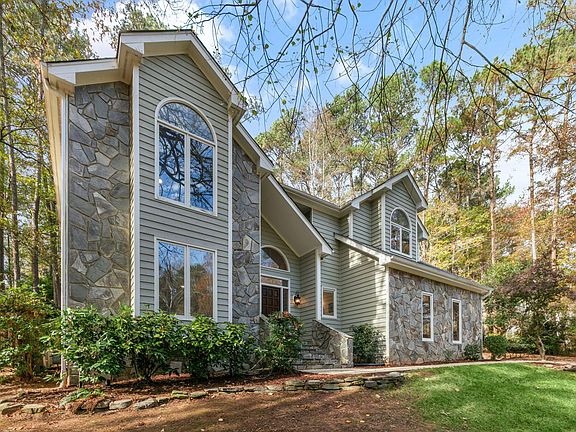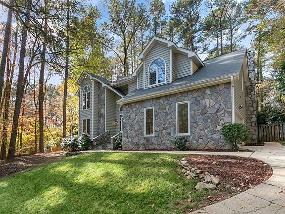 Stunning Custom Home in North Raleigh - Your Private Retreat Awaits! Renovation just completed. Nestled on just under an acre of lush greenery in one of North Raleigh's most sought-after neighborhoods, this charming cedar and stone residence offers a perfect blend of privacy, modern amenities, and convenience. Entertainer's Dream: Enjoy a spacious private deck and patio, perfect for gatherings with family and friends. Convenient Location: Easy access to I-540, parks, dining, entertainment, and close proximity to Falls Lake. Inviting Interiors: Freshly painted throughout, featuring laminate flooring on the first floor and owner's suite, a two-story foyer, cozy family room with a fireplace and built-in bookshelves. Gourmet Kitchen: Fully upgraded with brand-new quartz countertops, backsplash, appliances (new cooktop, range, microwave, fridge, dishwasher), and an island that makes cooking and entertaining a breeze. Flexible Spaces: Two flex rooms on the first floor offer versatile options for an office or formal dining area. Luxurious Owner's Suite: Cathedral ceilings, walk-in closet, and a spa-like bathroom with a large walk-in shower, jetted tub, and dual sinks. Secondary Bedrooms: Spacious with ample closet space and new ceiling fans. Ample Storage: Walk-in attic, two-car garage, plus additional parking pads. This home combines modern comforts with a tranquil setting and community amenities, including a neighborhood pool. Experience a lifestyle of privacy and convenience—schedule your tour today!