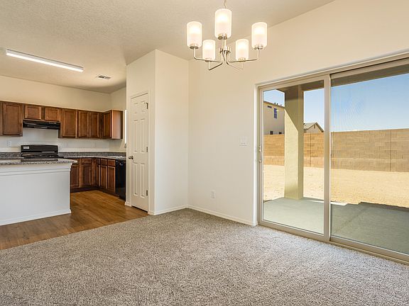 Pics are of model. Actual selections in home may vary. Currently offered at a fantastic price. Located in the highly desirable community of Mt. Hawk in north Rio Rancho. Close proximity to 550 and I-25. Enjoy the beauty of country life and the convenience of close by grocery store, convenience stores, services, restaurants, etc. Stove, micro, and DW are included. Walk in closet in primary bdrm. Tile in Kichen, laundry, bathrooms. Large covered patio. 10-yr structural warranty and one-year builder warranty. Take advantage of this low price while this home is still available.Pics are of model. Actual home selections may vary