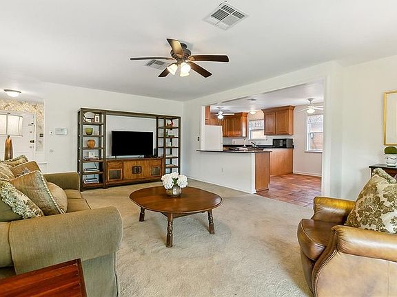 Fantastic opportunity to own a move in ready property ready for your personal cosmetic touches. The inviting front porch with gas sconces opens to a foyer and formal living room. The formal dining room leads to an eat in kitchen with beautiful wooden cabinets and granite countertops. Large family room with new sliding glass doors opens to an oversized covered patio built in 2018. The beautiful landscaped yard features a large storage shed built on pilings for possible future expansion, a new fence built in 2021, and an underground drainage system. Master bedroom with an ensuite bathroom and large walk in closet. All appliances stay including the microwave, washer/dryer set, and extra full size refrigerator in laundry room. All window treatments, blinds, and window hardware are included. Roof replaced in October of 2021. The property also features a whole house, monitored alarm and unique original features including an in wall safe and built in bathroom storage. Motivated Seller who welcomes individuals and investors. Schedule your private tour today!