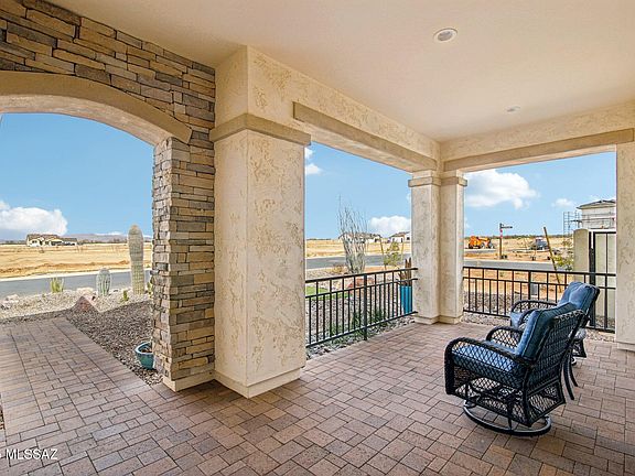Major Price Drop- Seller is motivated! Why wait to build when you can move into your dream home today! This brand-new Avalon sits on an amazing corner lot with stunning views of the Catalina Mountains and has every upgrade imaginable. Finishes selected are in a neutral color palette giving the home a warm and relaxing feel. You are greeted by a wonderful front covered patio, brand new landscaping, and upgraded exterior with stone accents. Home has upgraded French oak LVP flooring throughout with upgraded carpet in bedrooms. Chef's kitchen w/beautiful cognac alder cabinets, high end quartz counters with waterfall edge, custom pendant lights, and GE Signature s/s appliances. Butler's kitchen w/extra cabinets plus walk in storage pantry. Open great room with built in cabinetry & wine fridge. Dining room has built in floating cabinet, perfect to use as a buffet for entertaining, and designer lighting. Huge primary suite with upgraded enlarged shower, dual vanities, and custom walk-in closet. Guest bedroom with ensuite plus additional den/office. Majestic mountain views from the amazing extended outdoor covered patio. Contemporary style outdoor fireplace, electric sunshades, and brand-new landscaping. All this backing to natural desert open space for added privacy. Oversized three car garage with 4' extension, epoxy floors, extended driveway, whole house filtration system, and soft water system. Add to that the wonderful amenities of this premier active adult community with golf, tennis, pickleball, indoor/outdoor pools, hot tub, fitness center, on-site restaurants, and tons of clubs. This home has it all. Too many upgrades to list, see Documents. Builder warranty still in place.