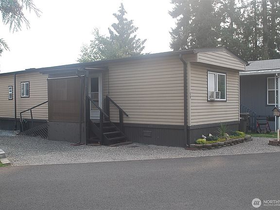 Great home in age restricted Airwaypark for 55 and older. Home has large tip-out creating a very spacious feeling when you walk into the home! Generous kitchen with eating space, 2 bdrms 1 1/2 bath, plus bonus room off of 1/2 bath. Fantastic, enclosed back porch with lots of windows, pantry and plenty of storage space. 2 Storage sheds with workspace and room for garden tools etc. Fenced secluded back yard, with 2 gates, a beautiful space to start your mornings and end your evenings! Extra touches, crawl space lighting, security lighting, updated electrical panel, updated plumbing, and added shut off valves! Beautifully maintained inside and out! Close to shopping, restaurants, parks etc. $770.00 Land Rent includes water, garbage and sewer.