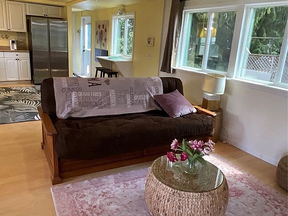 Totally updated with newer kitchen, both baths, flooring and paint. This 2 bed 2 bath light and bright single wide Mobil has new ramp installed, great storage shed, tandem parking for2 cars, and plenty of room for gardening. 55+ park has new paved roads and all lots are connected to sewer.