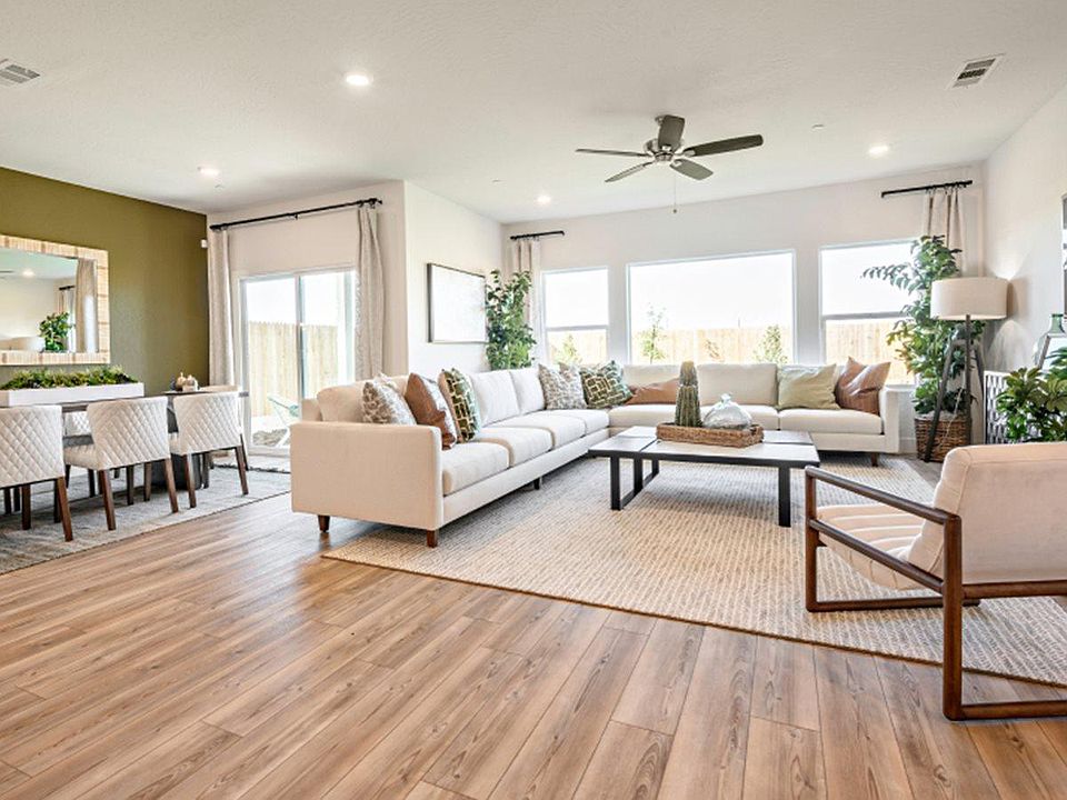 New beautiful 3 beds 2 bath home with open floor plan, big backyard. You will be second tenant of this new corner lot home. Upgraded flooring in Living, Kitchen and plush wall to wall Carpet in Bedrooms, Quartz countertops, Contemporary-style pendant light fixture Ceiling Fans in Living area and Master Bedroom, flat screen TV preparation in living area, LED lighting and smart home features. The house is close to freeway access, Shopping and located in award winning Clovis Unified school district. Pictures, photographs, colors are for illustration purposes only and will vary from the actual home. Actual pictures will be available upon the completion of construction. Refrigerator, Washer/Dryer Hookup Only 1 year (or more) lease required Minimum credit score of 650 required Tenant pays for utilities Please do not disturb current tenants. Appointments required for viewing.