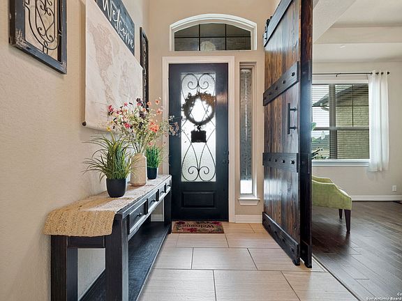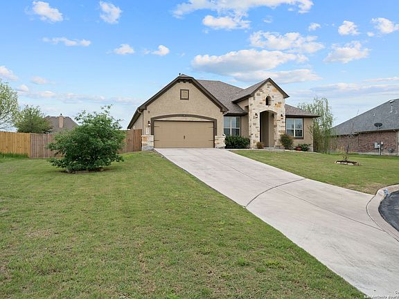 SELLER IS OFFERING $10,000 IN CONCESSIONS! Welcome to your oasis of tranquility in the prestigious Quiet Creek community. Situated on a sprawling .53-acre lot at the end of a peaceful cul-de-sac, this stunning one-story residence epitomizes luxury living at its finest. Upon arrival, the charm of this home is immediately apparent, with its meticulously landscaped grounds and inviting facade. Step inside to discover a spacious and meticulously designed floor plan that seamlessly blends elegance with functionality. The heart of the home is the impressive living room, adorned with custom wood beam accents that exude warmth and character. Gather around the cozy fireplace on cool evenings or bask in the abundant natural light that floods the room from the high ceilings and expansive windows. Entertain with ease in the gourmet kitchen, complete with an oversized island, gas cooktop, built-in oven, tiled backsplash, and stainless-steel appliances. Whether you're hosting a formal dinner party or a casual gathering with friends, this kitchen is sure to impress even the most discerning chef. Adjacent to the kitchen, a sunroom offers a serene retreat where you can enjoy your morning coffee or curl up with a good book. A separate office provides a quiet space for work or study, ensuring maximum productivity and convenience. Retreat to the luxurious primary bedroom suite, featuring a spacious layout, a charming bay window, and a lavish ensuite bathroom. Pamper yourself in the separate garden tub and shower and indulge in the convenience of dual vanities and a large walk-in closet. Three additional bedrooms and two and a half bathrooms offer ample space for family and guests, while a three-car tandem garage provides plenty of room for parking and storage. Step outside to discover your own private paradise in the expansive backyard, complete with a privacy fence, storage shed, mature trees, and a large deck perfect for outdoor entertaining or simply enjoying the serene surroundings. With its impeccable design, desirable amenities, and idyllic location in the sought-after Quiet Creek community, this exceptional home offers a lifestyle of luxury and tranquility that's second to none. Conveniently located to all JBSA military installations, shopping, restaurants, and all major highways. Don't miss your opportunity to make this dream home your reality. Schedule your showing today!