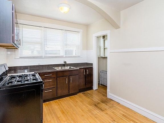 Top floor one bedroom on quiet, tree lined street. New in kitchen: cabinets, counter tops, appliances, back splash. New tiling in bath plus reglazed tub. Entire unit freshly painted. Beautiful hardwood floors throughout. Additional storage outside unit. Professionally managed building. Coin operated laundry on-site. Easy street parking. Quick access to Western Ave. The tenant is responsible gas and electric. Heat and water included. Must have a minimum credit score of 640. Application fee $25 per person, non-refundable.