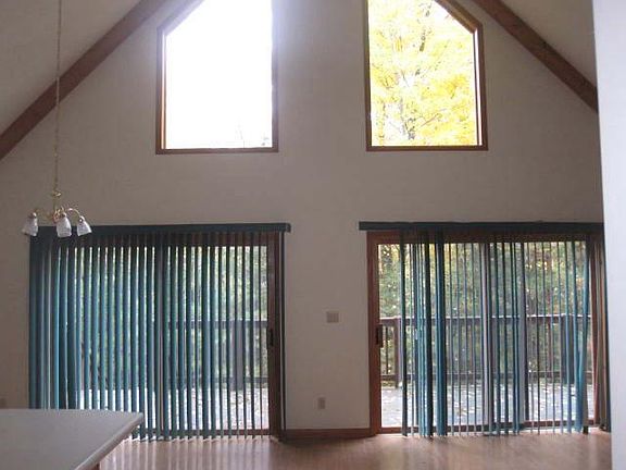 Three bedroom log sided home in a private setting on 3.33 acres of well wooded land. cathedral ceilings with a large great room living area that includes a wood burning fireplace and large wall of windows to let in natural light and the beauty of the woods surrounding the home. Upper loft overlooks the great room area and on the lower level both bedrooms have patio doors leading out to the yard. Large wrap around deck and two car garage with extra storage space finish off this great opportunity for your year round home! Flood Zone Designation X.