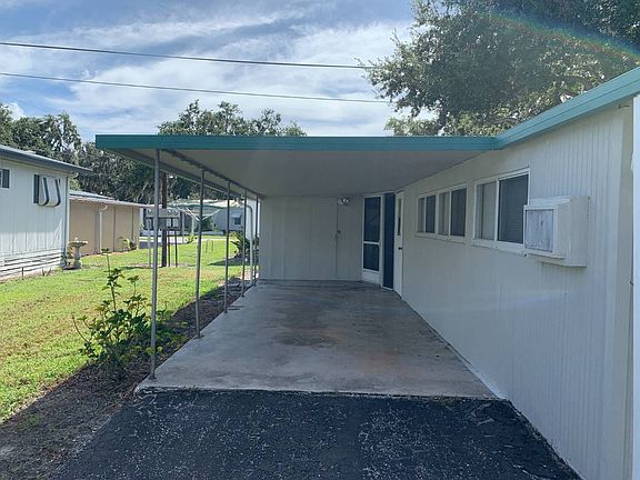This is a mobile home for sale in a 55+ pet friendly community on a rented/leased lot. This 2BR/1BA home has been updated with vinyl and tile floors. It's perfect for seasonal or year round living for the Manatee River enthusiast! It has a split level floor plan with a raised kitchen. The living room is a 12 x 24 add on with 18" tile flooring, a ceiling fan, wall a/c and access to the indoor laundry area (washer/dryer included in the sale) on the back of the home. The laundry area is screened with a concrete floor and a separate exit onto the carport. The dining area has wood look vinyl flooring and opens into the kitchen. The kitchen has wood look vinyl flooring, a refrigerator, oven/range, microwave and double sink. The master bedroom has wood look vinyl flooring, a ceiling fan, a window a/c and a closet. The hall bathroom has wood look vinyl flooring and a full size walk in shower. The second room could be a bedroom/office or craft room and has an entrance to the front and exit to the back yard. It has wood look vinyl flooring and a ceiling fan. There is a carport that can park two cars tandem style. There is a shed for extra storage. The lot rent is $550 per month and includes water, sewer, trash, lawn, clubhouse and many community activities. Pelican Pier Mobile Home Park is a pet friendly 55+ community on the Manatee River.