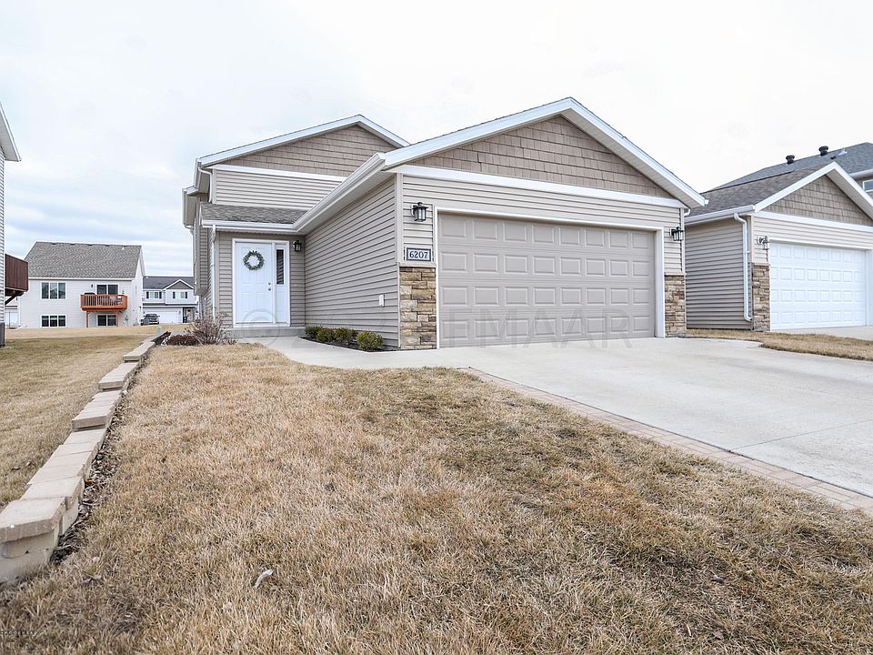 Welcome to 6207 59th St. South Fargo! The highly sought-after Deer Creek neighborhood is ready for you! With 3 bedrooms, 2 baths and extra storage under the deck, this home is move-in ready! The beautiful coffered ceilings in the primary bedroom and main living space is a fun bonus, as is the large dining area and deck for all your hosting needs. Some bonus features are the concrete walkway to the backyard deck stairs and concrete under enclosed storage. Gas line is ready for a gas heater in garage. Enjoy having a beautiful lawn with the underground sprinkler system.
