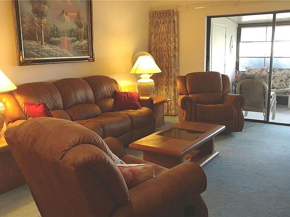 You'll love the incredible wrap around views of the pond and fountain from this very nice, clean, two bedroom, two bath Meadowcroft South unit! Unit features new A/C system, brand new roof, new water heater - lanai recently roofed as well! Home is being sold nicely furnished. The unit is just steps to pool and clubhouse. The spacious lanai includes vinyl windows, a storage room and a great place to enjoy direct views of the beautiful pond. Kitchen includes quality appliances (range has 2 ovens), including a washer and dryer, and the rooms are spacious. Be sure to put this home at the top of your list!