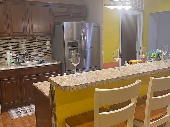 Welcome to this charming 3 bedroom with bonus room, 2 bathroom semi detached home in a quiet neighborhood in 21215. Upon entering the home you will be greeted with an open floor plan with hardwood floors. The kitchen boasts stainless steel appliances and large island with overhang for seating. From the kitchen you will have access to the large fully fenced backyard and fire pit. Upstairs you will find 3 bedrooms with a full bathroom. Head down to the basement where you will find an entertainment area with a bonus room that can be used as another bedroom. Basement also features a full bathroom with walkout.