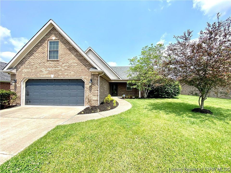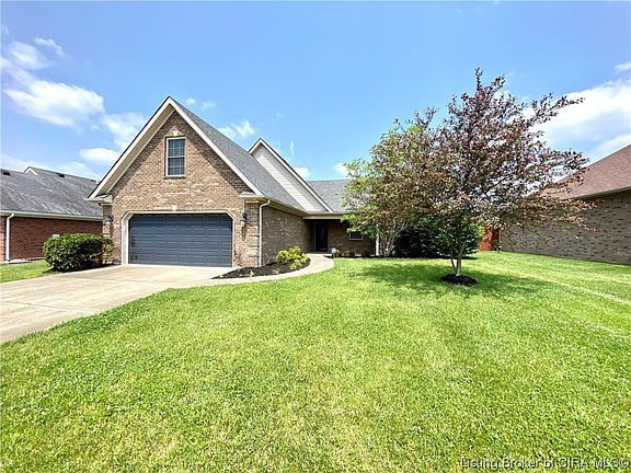 Welcome home to this large four bedroom two bath home that is turnkey ready. This all brick home is conveniently located just minutes away from River Ridge and the East End Bridge and booming area of Sellersburg. Great curb appeal awaits with newer landscaping, covered front porch and drop lighting for ambience at night. Make your way inside to see a large living room connected to the eat-in kitchen with lots of cabinetry and appliances including $1000 credit towards new refrigerator. The owner suite is on the first floor with walk-in closet and giant tub, and tray ceilings. There is a large laundry room, and also a walk-in pantry and a coat closet on the first floor. Two bedrooms with deep closets on the other side of the home making it a split floor plan. Take a look upstairs and you will notice a large bonus room with closet for extra storage. Make your way outside and you’ll notice a large backyard with a patio. The large 22 x 22 garage is perfect for bigger trucks or SUVs. According to previous sellers disclosures, the roof and water heater were replaced in 2019. Clubhouse and pool for those hot summer nights as well! Call today to come take a look as this home that has a lot of bang for your buck and nothing like it on the market. Agent/seller licensed real estate agent:listing agent. Sq ft/taxes approximate, buyer/agent to verify.