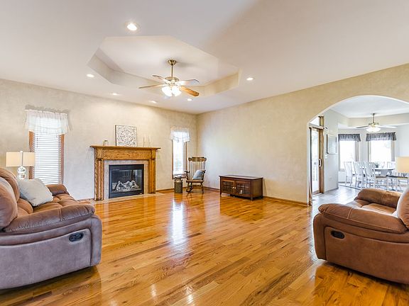 WELL MAINTAINED SPACIOUS RANCH STYLE HOME. Amenities abound in this incredible home boasting an easy living plan. Spacious living room with wood floors and gas fireplace and beautiful mantle. From living room enter the large eat-in kitchen with a multitude of cabinets and countertop space. (Pleasing to every cook!) Laundry is located between kitchen and garage. To complete the mainfloor you will find the master suite. two additional bedrooms plus a smaller office which could also be a great nursery! The master bedroom and the lower level bedrooms have new windows! There is great space in the lower level which includes an expansive family room with gas fireplace & wetbar, two conforming bedrooms, a bath, plus a bonus room perfect for exercise, toys or office. The roof is only 6 years old. Two water heaters and a water softener. No special taxes. All located on cul de sac. Possession is immediate/negotiable. Community park and pool complete the appeal to this lovely home.