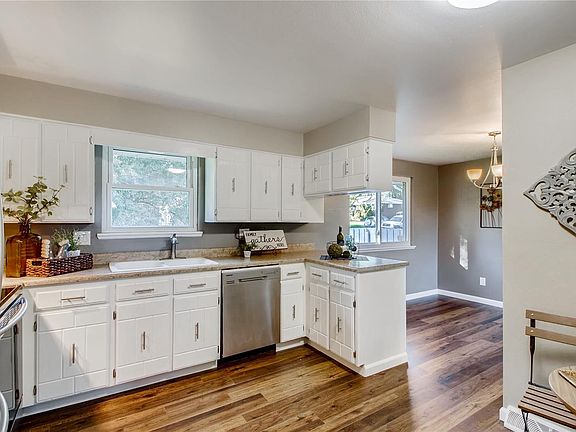 So cute and updated with stunning new flooring and fresh paint!! This delightful 3 bed 2 bath Tri-level home is bright & airy with large vinyl windows and vaulted ceiling in the front living room. Formal dining area is perfect for large gatherings which flows into the kitchen. The kitchen boasts stainless steel appliances, abundant counter space and white cabinets, breakfast bar, and kitchen nook. A classic red brick wood burning fireplace, nestled on the lower level, is a cozy space for relaxing. A sliding glass door leads to the patio overlooking an oversized backyard with plenty of raised beds for gardening. Upper level with 3 large bedrooms with double closets and a hall bath. Partial unfinished basement for you to personalize. Super clean and well maintained! Large corner lot with mature tress!Close to the Arvada Center, shopping, restaurants, parks, and trails. Don't miss this one! Discover why this is the next place you'll want to call HOME!!