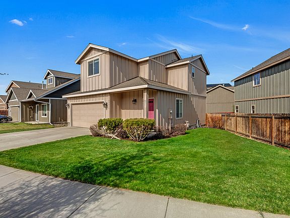 Lovely two-story home on Bend's Eastside, near the Forum shopping center and St Charles Medical Center. Entry foyer leads to the expansive living room, adjoining dining area, both served by an open kitchen that offers plentiful storage, kitchen island and granite counter tops. Upstairs, the spacious resident suite with en-suite bathroom featuring dual vanity, private water closet, shower and large walk-in closet. Two additional guest bedrooms, each with generous closets, share a private bathroom. Upstairs laundry/utility room affords additional convenience, coupled with an additional flex/bonus room (no closet) that could be used as a fourth bedroom. Central air-conditioning, attached two-car garage and a fully fenced, landscaped yard.