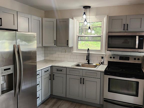 This beautiful ranch style home has been completely renovated and offers great one level living on nearly an acre of land. Beautiful hardwood floors greet you as you walk in the door with natural sunlight from the big picture windows in the living room and dining room. The custom barndoors leading to the back family room create warmth with fresh paint throughout the entire house and new carpeting. Although all 3 bedrooms are carpeted, there are natural hardwood floors underneath. Additional new fixtures complete the updates as this home is ready to welcome it's new family! The backyard provides ample space for outdoor living and can be the oasis you dreamed of! The roof is also newer, replaced in 2022 as well as most windows replaced in 2021, and bathrooms renovated in 2022 and 2024. Home is being sold AS-IS. Owner is listing agent.
