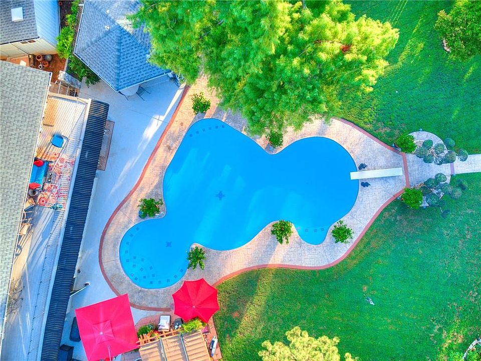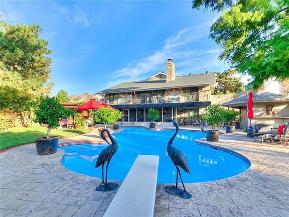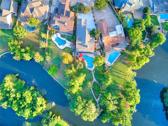 Welcome home to this beautiful private oasis. Centrally located in the heart of Oklahoma City, this home sits on a Large lot just shy of an acre. The large secluded lot backs up to Bluestem Lake. Enjoy the breathtaking views from the screened in porch, or the lifetime composite wrap around deck! The home includes a dock, paddleboat and a kayak. The lake offers incredible fishing and wildlife entertainment. Take a dip in this Olympic sized, custom, salt water pool that is in the shape of a duck sitting on a ball, fully heated and re-plastered in 2022. The yard also includes two pergolas, she shed and cabana with a half bath! This home has too many incredible features to mention including, new HVAC Geothermal in 2022, new Home generator installed in 2023, two safe rooms, one is utilized as a wine cellar, two large living spaces, a double fireplace and another single fireplace. Two wet bars with mini-refrigerator and ice machines. Schedule a tour to get the full luxury experience!