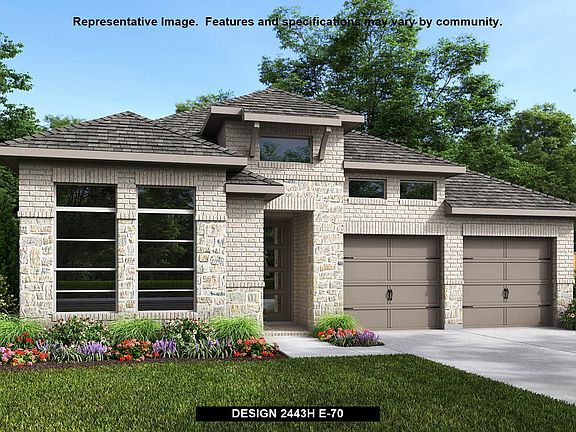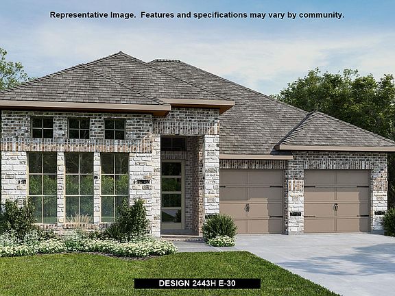 Welcoming entry features 12-foot ceiling. Open kitchen offers generous counter space, corner walk-in pantry and inviting island with built-in seating space. Dining area flows into open family room with wall of windows. Game room with French doors just across from kitchen. Primary suite includes bedroom with wall of windows. Dual vanities, garden tub, separate glass-enclosed shower and two-walk in closets in primary bath. Guest suite includes full bath. Abundant closet space throughout. Covered backyard patio. Mud room off two-car garage.