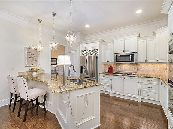 Luxury TH that has it all-walk thru the majestic doors into your new home! Spacious floor plan with gourmet kitchen rich with SS appliances, sparkling granite and roomy bar that opens to breakfast area, fireside great room with built-ins and large separate dining room. Wall of windows looks out on private, professionally landscaped oasis with relaxing waterfall and woods. Extraordinary fireside primary bedroom has spacious bath with double vanities, separate shower & spa like tub. Generous secondary bedroom ensuites each with walk in closets. Fabulous wide plank hardwood floors on both main level and upstairs. Storage areas on each floor are closets ready for elevator upgrade. Convenient upstairs laundry room. Community has a pool for cooling off during the hot summer days. 2021-04-01