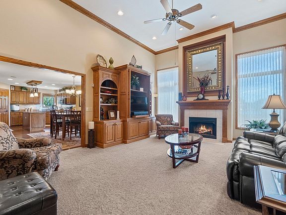- 1st Bdrm En Suite, Sound System, Ceiling-9+, Tray Ceiling(s), Ceiling Fan(s), Countertops-Solid Surf, Crown Molding, Entrance Foyer, Kitchen Island, Natural Woodwork, Stand Up Shower, Tub and Separate Shower, Main Level Bedroom Suite, Custom Cabinetry