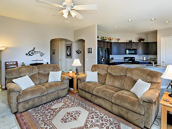 Very popular Great Room Style Model 610A Floor Plan in desirable Granville Foothills area on Premium View Lot. Home is NON-SMOKING and PET FREE! Great views of Mingus and Williams Mtns, Glassford Hill and SF Peaks makes this clean move-in ready home a winner! Upgrades estimated @$44K include Neutral Paint Scheme, Granite Counters, Maple Cabinetry, Patio BBQ Gas Stub, Corner Fireplace w/Blower, Baseboards, Tile in Main Living Areas, Carpeting in 4 Bedrooms, Utility Sink, Window Valences, Stove Plumbed 4 Gas, Front and Rear Landscaping w/Lighted Paver Patio, and Both Bathrooms Dual Vanities. Use the front 4th bedroom as office or exercise room. Garage Tandem area apx 19' Deep x 11' Wide can be Workshop or Craft Space. Located near 'Bark Park'! Granville offers 2 Clubhouses, Pools, Tennis and Pickle Ball