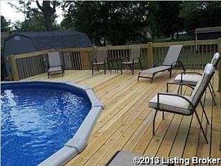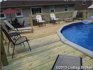 Single Family Home for sale by owner in Louisville, KY 40272. Ranch style home in quiet suburban neighborhood. Sun Valley park and golf course area. 4 bedroom (possibly 5th), two baths, full finished basement, laundry room, pool with deck (warranty included). New roof, new windows, remodeled kitchen and baths. Crown molding throughout home. Hardwood floors upstairs, carpet downstairs. Kitchen appliances included. Surround sound speakers installed for television downstairs. Flat screen TV (58 inch) negotiable to be included. High efficiency air conditioner and furnace. Well manicured landscaping