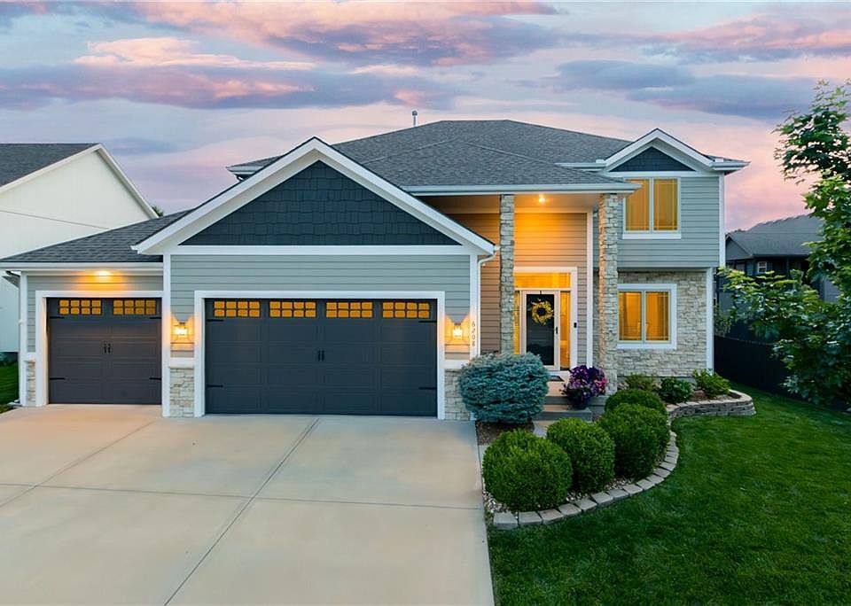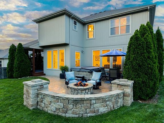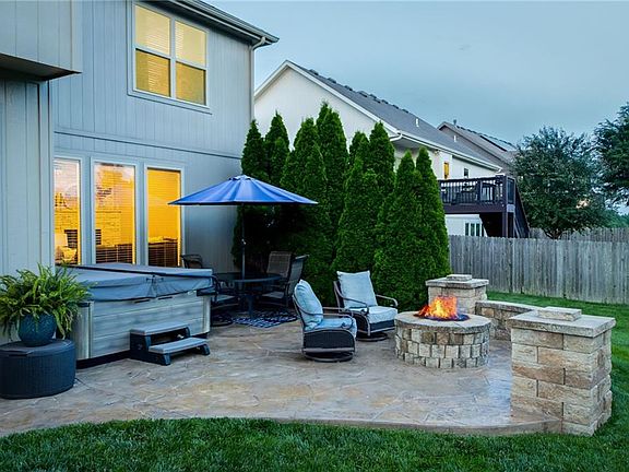 Retreat to the luxurious master suite showcasing a vaulted ceiling, cove lighting, and a private bath oasis. Pamper yourself with double vanities, a generous walk-in shower with dual heads, and ample natural light, complemented by a custom sit-down vanity. Upstairs, discover well-appointed bedrooms, each with its own sink, along with a guest suite providing comfort and convenience. Prepare to be amazed by the expansive finished basement, offering abundant space for recreation, exercise, and gatherings. Complete with a shuffleboard table, this basement is a haven for an entertainer. For the outdoor enthusiast, the covered deck provides the perfect setting for all your grilling needs, accommodating a grill, smoker, and more. This warm abode stands out with its captivating stone wall, elevating its aesthetic appeal to new heights. The expansive backyard retreat is fully fenced and adorned with lush privacy trees, creating a tranquil and inviting atmosphere. The stamped concrete patio, accompanied by a wood-burning stone firepit, sets the stage for unforgettable gatherings, offering a touch of opulence for any mood. Don't miss the opportunity to own this exceptional home, where luxury, comfort, and space converge in perfect harmony.