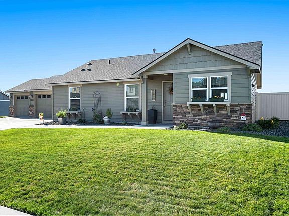 MLS# 280782 Home Sweet Home!! This fabulous rambler features 3 spacious bedrooms, 2 baths, insulated & heated 3-car garage, and so much more! As you walk through the front door you'll instantly be welcomed with natural light that fills the room through the large windows, vaulted ceiling, and a gorgeous kitchen with granite countertops, full height backsplash & breakfast bar. Kitchen opens up to the dining nook and cozy great room with wood wrapped windows and sliding glass door that leads to the backyard with large concrete patio...great for entertaining family and friends. Other features include laundry room with upper cabinets, additional storage cabinets in garage, enclosed fencing, and timed UGS! Make this wonderful home yours!