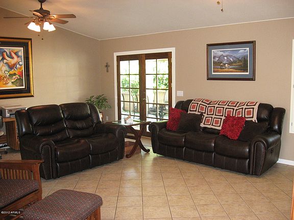 Traditional Sale and no HOA. Move-in-ready home has split floor plan and lots of upgrades. Many windows create light and bright environment. Tile in traffic areas and laminated flooring in BR's. Eat-in kitchen incl. dinette, breakfast bar and pantry. Vaulted ceiling in GR. Ceiling fans and tasteful custom paint throughout. Tastefully remodeled Master BA features raised cabinet, granite c'top, expanded shower w/tile surrounds, dual-sink vanity and glass block window. Hall BA nicely updated, too. Separate exit from Master Suite to beautiful backyard oasis with mature trees, lush grassy play area and oversized pebble-finish play/lap pool. Great location within walking distance to schools. Close to Arrowhead Mall, parks, hospitals, shopping and restaurants. A definite must see!