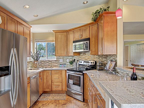Move-in-ready rambler in wonderful Silver Firs. Fully tastefully remodeled: new kitchen cabinets, granite counter tops, SS appliances, hall bath & master bath with matching & double vanity, carpet & interior paint... 3 good sized bedrooms, 2 full baths, 2 car attached garage, fully fenced backyard with privacy & a large entertainment size patio. Open concept living/dining with vaulted ceiling.This turn key house is located on a spacious lot on a quiet cul de sac, great neighborhood. See today!