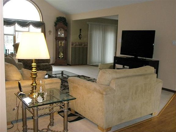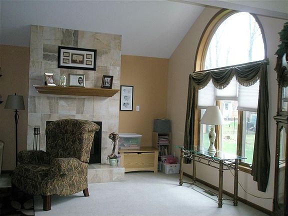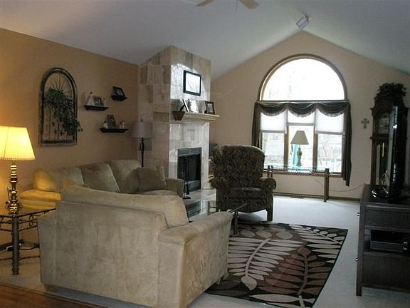 Wonderful Neighborhood! This 4 Bedroom 3 Bathroom Ranch offers vaulted ceilings in living room with gas fireplace & circle windows overlooking private back yard. Master Bedroom has private bath with whirlpool tub plus walk-in closet. Eat-in Fully applianced Kitchen has ample counter space plus pantry. Finished basement boasts 13ft. oak wet bar, Theater area, Bedroom, 3/4 bath plus private office with built-in cabinets. Roof was replaced in 2012, Hot water heater is 5 years old, driveway & landscaping replaced within the last 3 years. sliding doors from dining room to deck in private back yard that also offers Paver Brick Patio & Storage Shed. Surrounded by Great Neighbors, located near everything, come take a look & fall in love!
