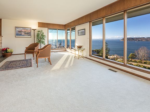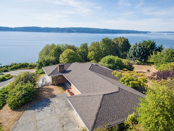 Stunning Panoramic View from this traditional mid-century home. Beautifully located at the crest of a hill, on a promontory, overlooking the ocean on 3 sides. This house, 4 bedrooms & 3 baths has good bones and could be upgraded. 2 large concrete patios, greenhouse, mature landscaping & newer roof. Sold "As Is". Sought after Olympus Terrace location and Mukilteo School District.